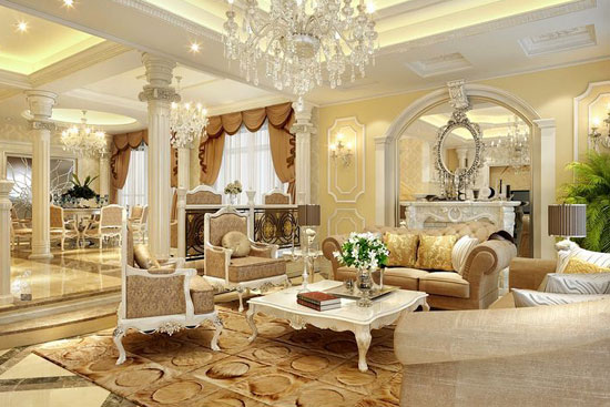 當然,歐式風格辦公裝修、賓館酒店裝修裝飾等工裝,或家庭裝修裝飾、別墅裝修裝飾等家裝中,濃郁氛圍的也是主次分明的,一般都會把深色的橡木或楓木家具、具有鮮艷色彩的布藝沙發(fā)等作為別墅裝修裝飾等家裝中客廳的主要角色,這也就是說是不可缺少的。還有浪漫的羅馬簾、精美油畫、工藝精美的雕塑藝術品等,都是歐式風格家裝或工裝中的主要、主導型軟裝飾元素,這些元素自然會隨小戶型、大戶型以及較大戶型的不同而在應用上作增減選擇的。
