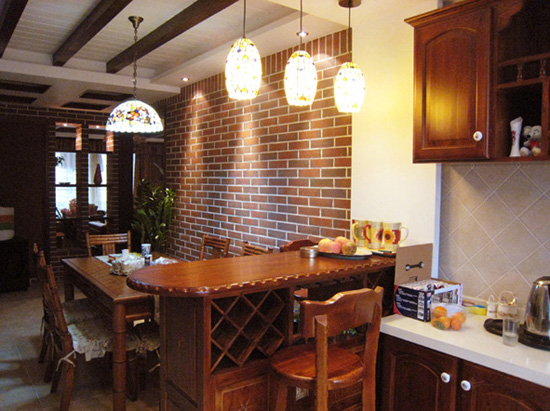 中式田園風格的另一特點即是對于傳統(tǒng)的居室設(shè)計很注重空間的層次感。設(shè)計時根據(jù)居住人數(shù)的不同,對整間房屋做出了空間功能性的劃分,但是并非選用打隔斷來完成,而是采用“啞口”或者是簡約化的“博古架”開劃分區(qū)域。在個別需要隔絕視線的地方,可選擇用實木制作而成屏風或者窗欞來分隔兩個空間區(qū)域,選擇這樣的方式,不僅方便,而且使得空間活動范圍更為靈活,更具層次之感。