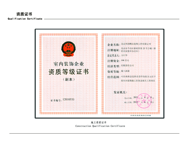 室內(nèi)裝修資質(zhì)等級(jí)證書(shū)
